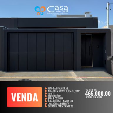 Casa Alto das Palmeiras 163,60 mt2 de construção Terreno 13x 26 mt2 Garagem para um carro Sala e cozinha gourmet separado 1 dormitório 1 suíte 1 demo suite que dá acesso à área externa 1 escritório 1 wc 1 dispensa 1 lavanderia fechada ( estendel escondido ) com um cisterna de armazenamento de 5 mil litros. (Para utilizar no jardim e varanda ! ) Energia solar , de 1.100 klw Quintal na frente e nos fundos Valor R$ 1.090.000,00